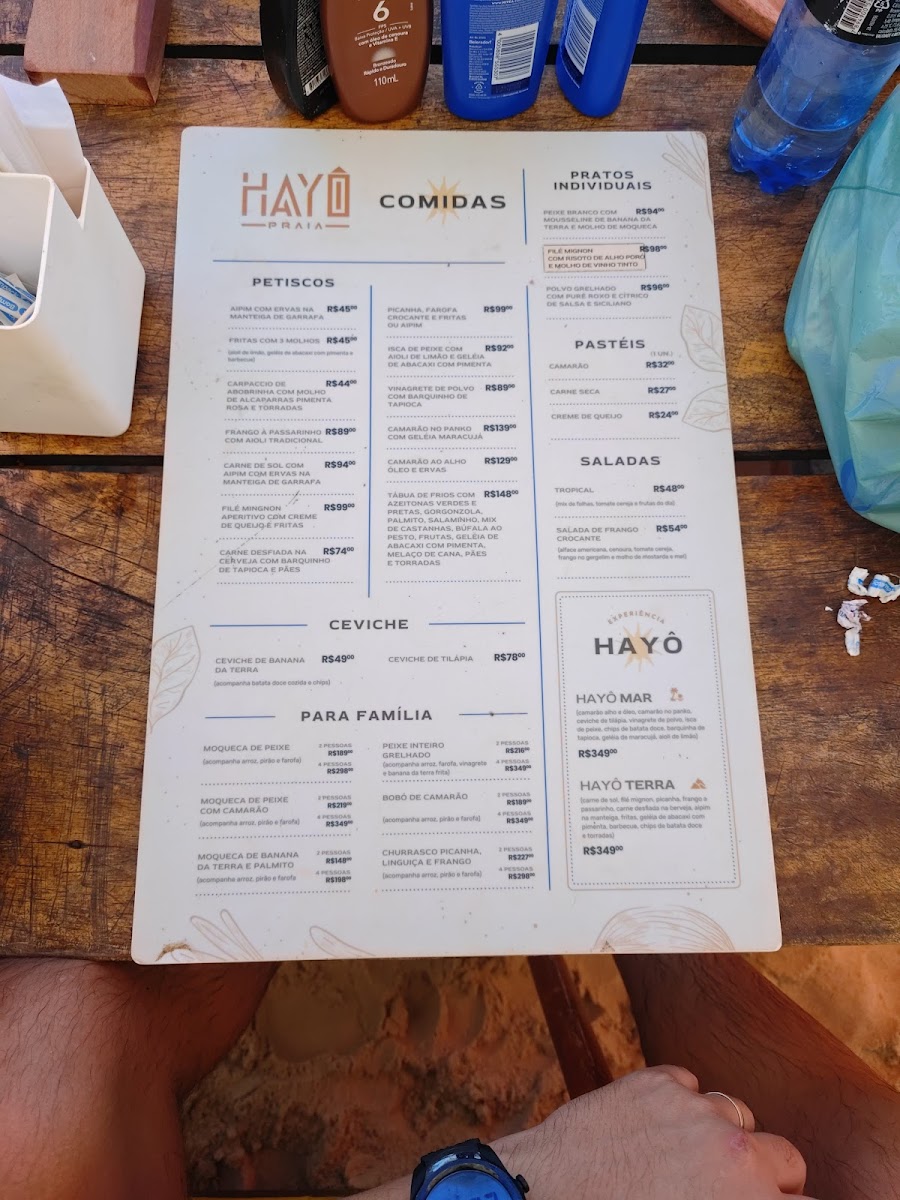 Introducing Hayô Pitinga, a beloved beachfront cabana located at Praia da Pitinga in Arraial d'Ajuda, Porto Seguro, Brazil. Renowned for its exceptional service, guests rave about the friendly staff, particularly the cheerful Matheus and the attentive Gustavo, who ensure a delightful dining experience. The menu boasts a selection of delectable dishes, with highlights like the mouth-watering File Mignon and refreshing cocktails such as Pesseguito and Pinacolada.